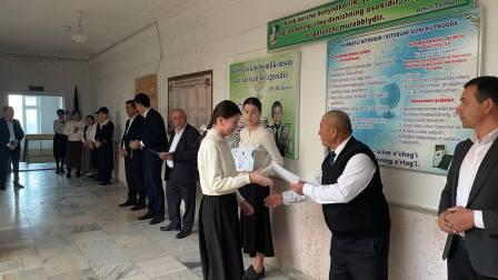 Asosiy fan olimpiadasi tuman bosqichi g'oliblari tuman maktabgacha va maktab bo'limi tomonidan diplomlar bilan taqdirlandilar. Maktabimiz o`quvchilaridan 7 nafari g`oliblar safidan joy olishdi, shulardan 4 nafari 1-o`rin, 3 nafari 2-o`rinni egalladilar. Ismoilov Og`abek (11-sinf, matematika), Aminova Malika (10-sinf, rus tili), Jumaboyeva Fotima (9-sinf, rus tili), Sobirova Xumoroy (9-sinf, informatika) 1-o`rinni egallab 1-darajali diplomlar bilan, Jumaboyeva Mushtariy (11-sinf, rus tili), Qurolova Zuhra (9-sinf, matematika), Xaytboyeva Oltinoy (9-sinf, geografiya) 2-o`rinni egallab 2-darajali diplomlar bilan taqdirlanishdi.
