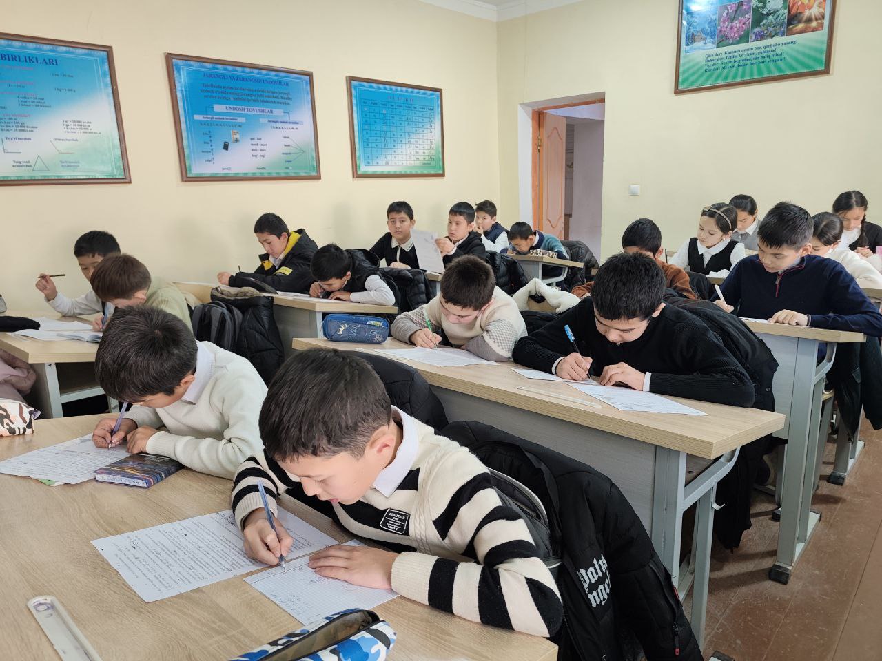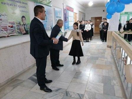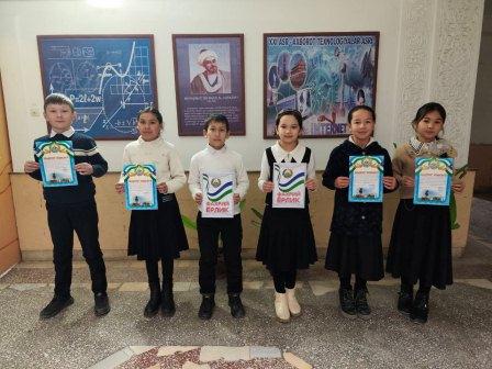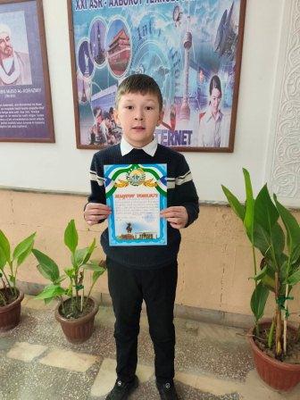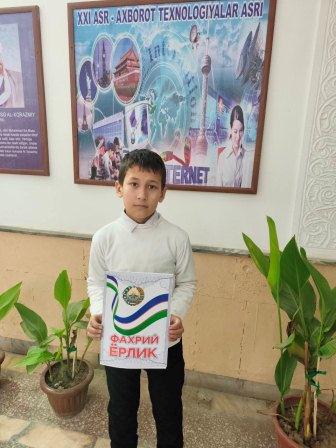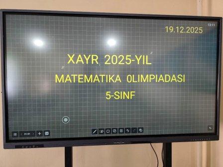 2025-yil bilan munosib xayrlashish maqsadida 5-sinf o`quvchilari o`rtasida "Xayr, 2025-yil" matematika olimpiadasini o`tkazdim. Unda yuqori natija ko`rsatib g`olib bo`lgan 6 nadar o`quvchi: Kamiljanova Mushtariy (1-o`rin), Xaytboyev Sardor (1-o`rin), Allayarova Lobar (2-o`rin), Davlatboyeva Zebuzar (2-o`rin), Zaripboyeva Jasmina (3-o`rin), Erkaboyev Donyorbek (3-o`rin) maktab faxriy yorliqlari va maqtov yorliqlari bilan taqdirlandilar.